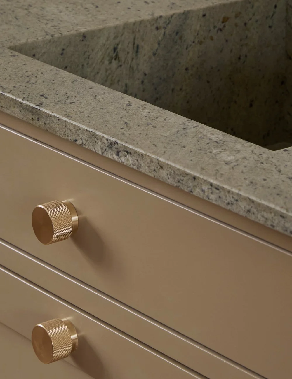 The Lemon Ice granite worktop is both durable and visually striking. In this kitchen, the natural stone is used for the worktop, sink, splashback and kitchen island — creating a cohesive, elegant look with lasting quality.