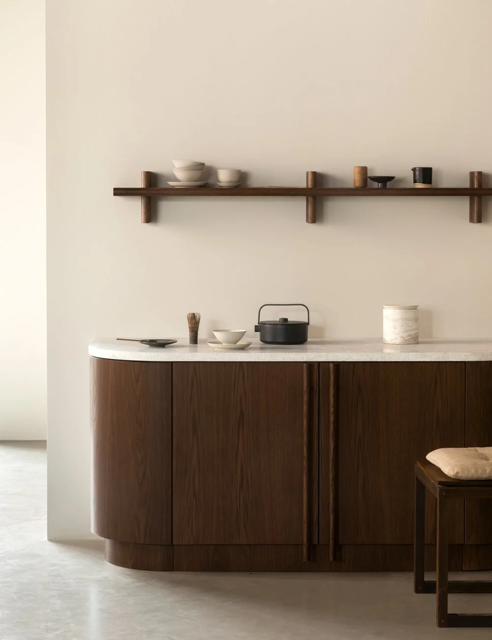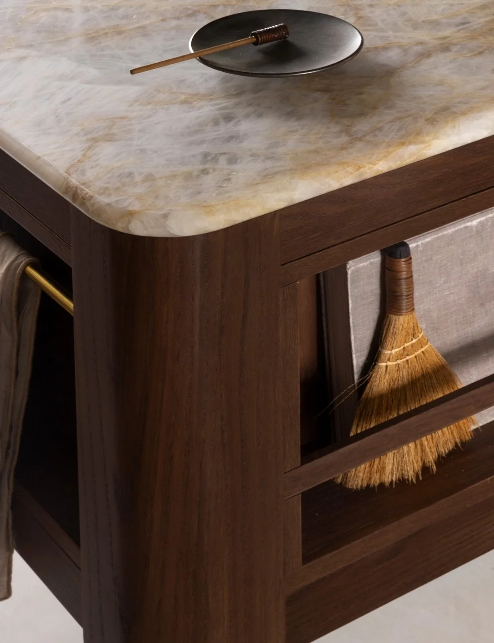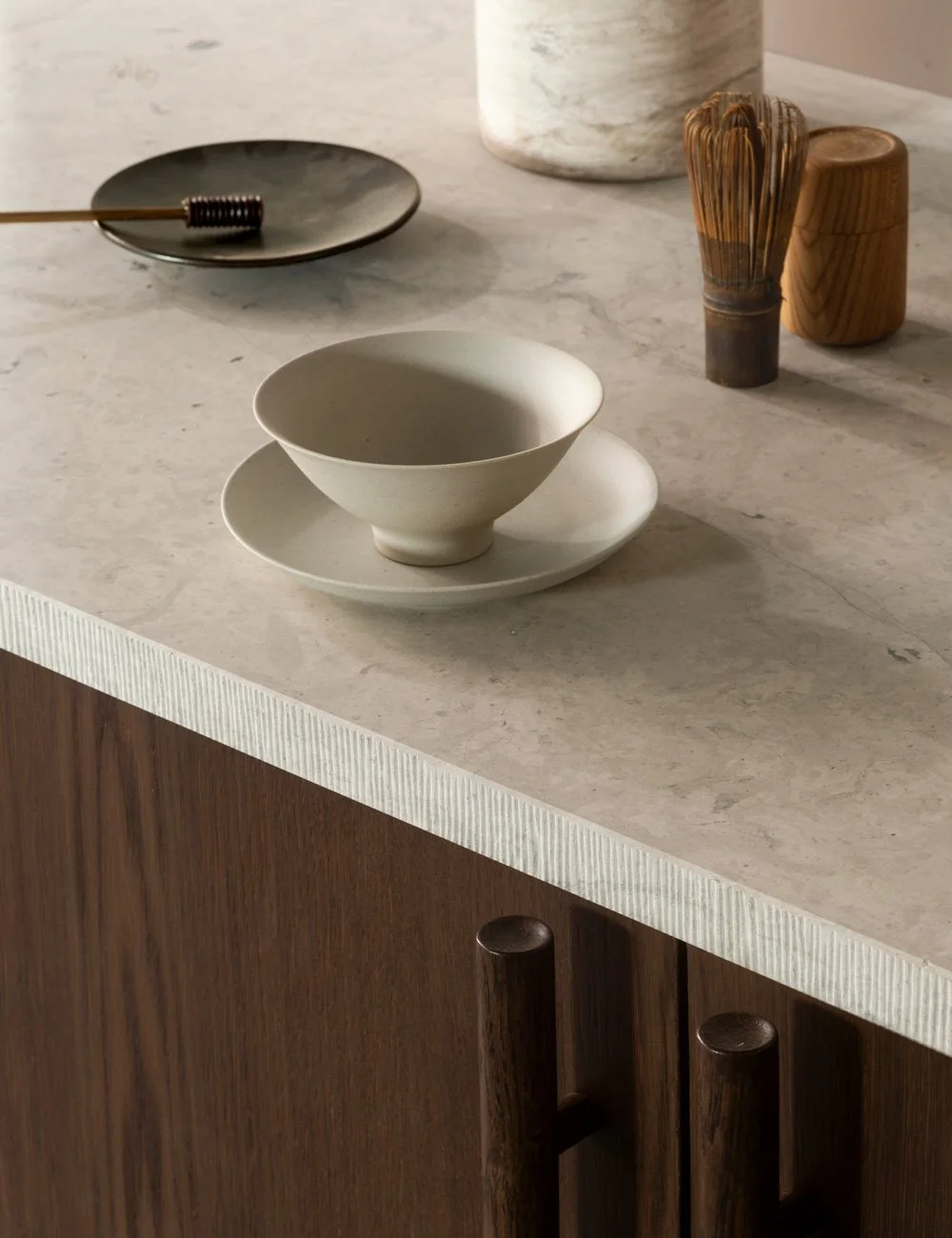 Limestone worktop with a fluted edge – a subtle detail that adds character to the kitchen.