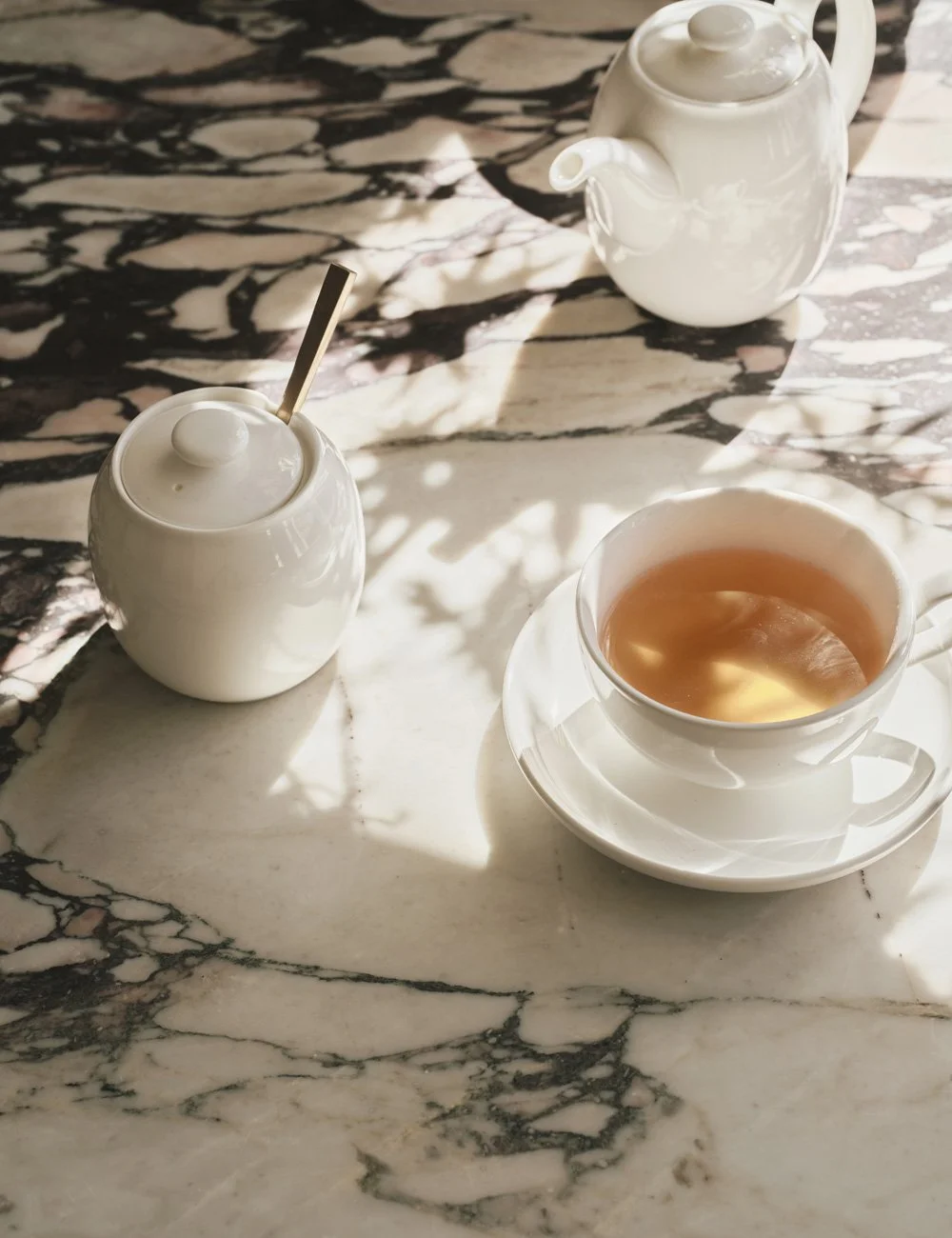 The couple’s sense of design is evident throughout the home, with marble serving as a recurring theme.