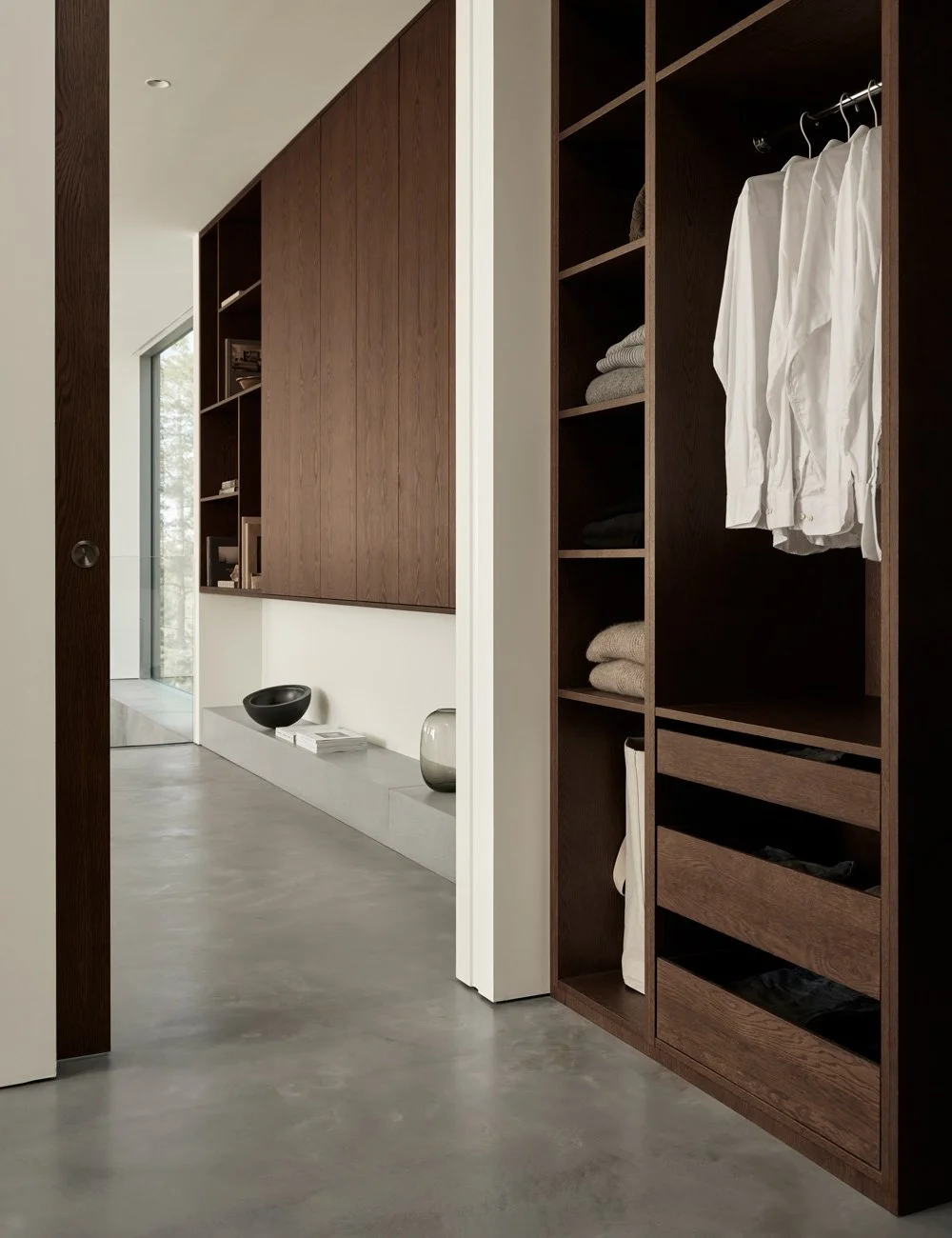Custom-built walk-in closet by Nordiska Kök, naturally integrated into the architecture.