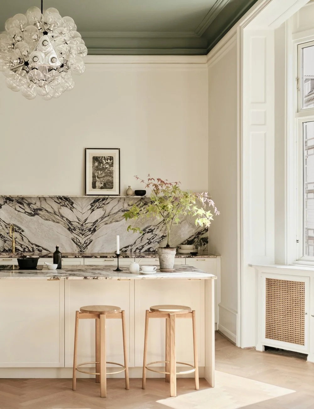 With a light colour palette, soft arches, and beautiful natural stone, a refined and sophisticated expression emerges—where Scandinavian design meets French elegance. Classic details enhance the sense of elegance, creating a soft, inviting aesthetic that feels both airy and timeless.