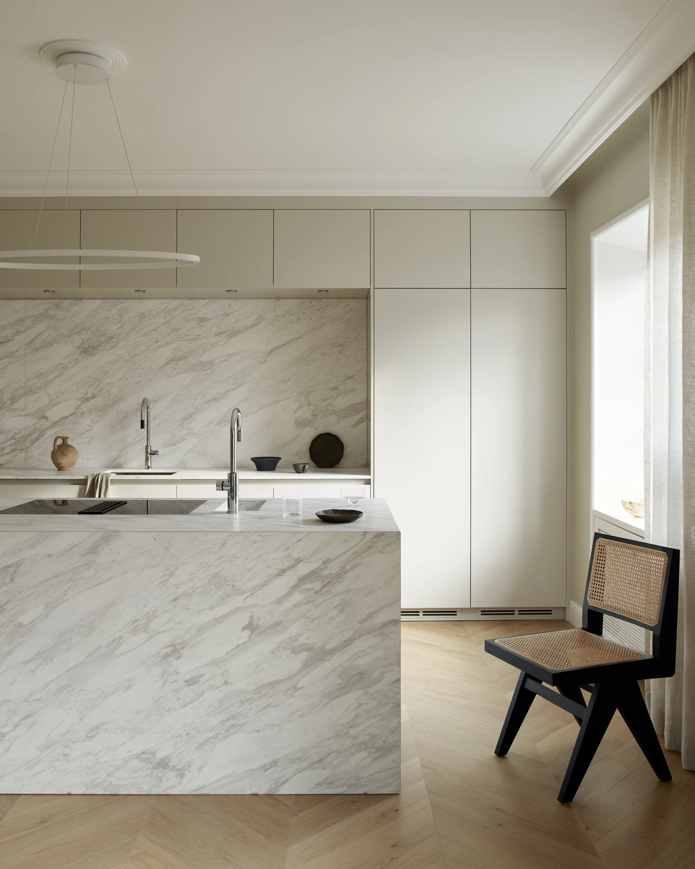 Another strong indicator that we want to create contrasts, is the growing request for natural stone with dramatic patterns, like Arabescato- or Calacatta marble. By letting something stand out, the room is filled with identity and beautiful details are enhanced.