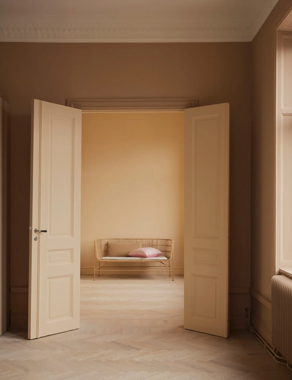 By painting walls, ceilings, radiators and mouldings in the same shade, a softer and more refined impression is created in the home.